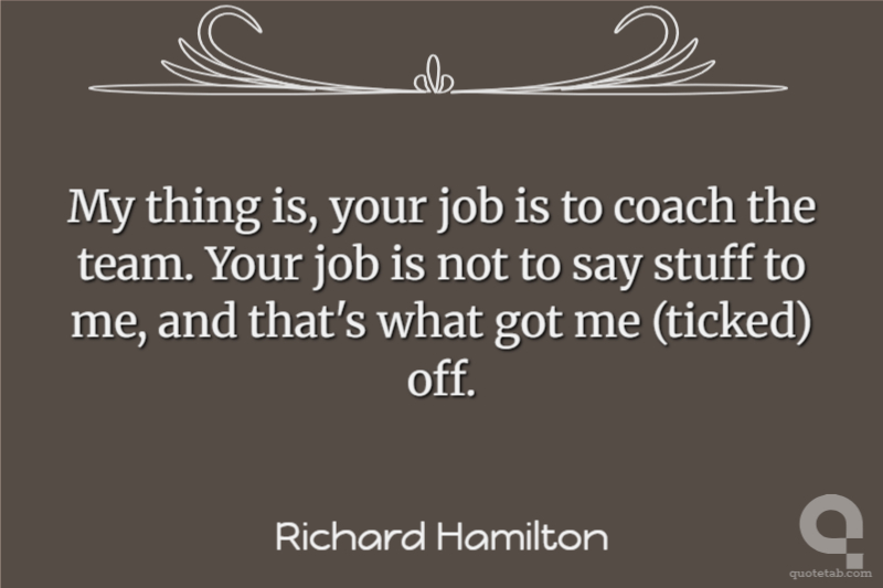 My thing is, your job is to coach the team. Your job is not to say stuff to me, and that's what got me (ticked) off.