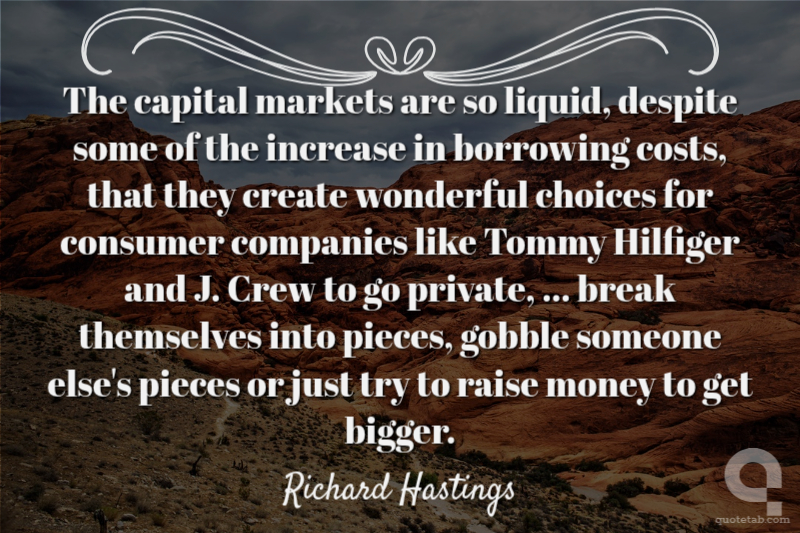 The capital markets are so liquid, despite some of the increase in borrowing costs, that they create wonderful choices for consumer companies like Tommy Hilfiger and J. Crew to go private, ... break themselves into pieces, gobble someone else's pieces or just try to raise money to get bigger.