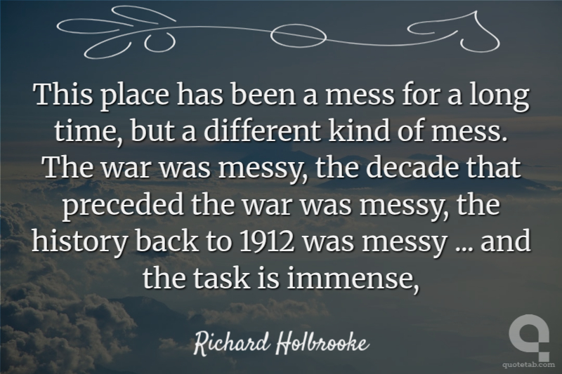 This place has been a mess for a long time, but a different kind of mess. The war was messy, the decade that preceded the war was messy, the history back to 1912 was messy ... and the task is immense,