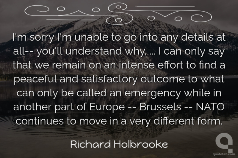 I'm sorry I'm unable to go into any details at all-- you'll understand why, ... I can only say that we remain on an intense effort to find a peaceful and satisfactory outcome to what can only be called an emergency while in another part of Europe -- Brussels -- NATO continues to move in a very different form.
