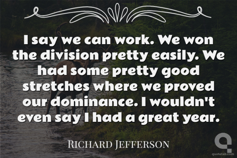 I say we can work. We won the division pretty easily. We had some pretty good stretches where we proved our dominance. I wouldn't even say I had a great year.