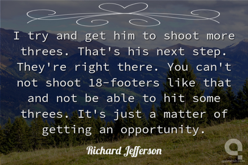 I try and get him to shoot more threes. That's his next step. They're right there. You can't not shoot 18-footers like that and not be able to hit some threes. It's just a matter of getting an opportunity.
