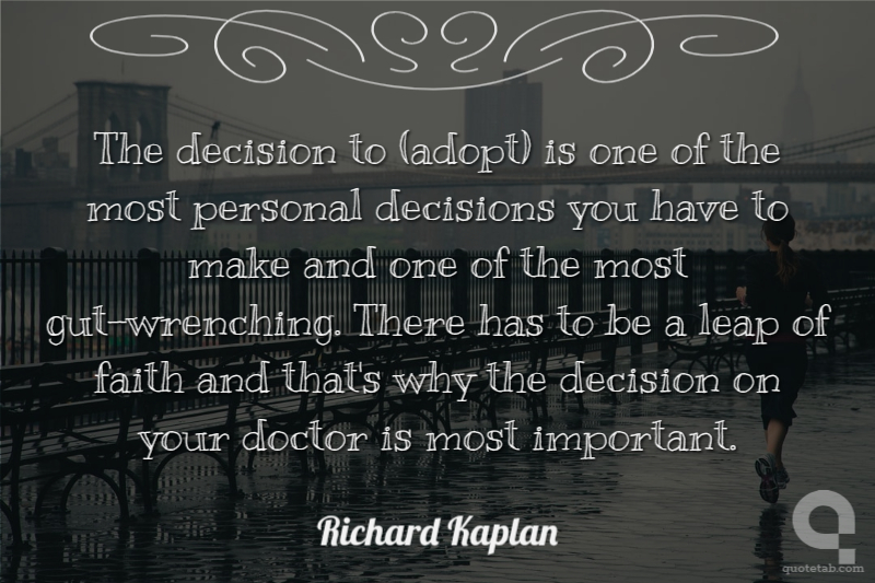 The decision to (adopt) is one of the most personal decisions you have to make and one of the most gut-wrenching. There has to be a leap of faith and that's why the decision on your doctor is most important.
