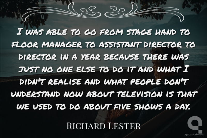I was able to go from stage hand to floor manager to assistant director to director in a year because there was just no one else to do it and what I didn't realise and what people don't understand now about television is that we used to do about five shows a day.