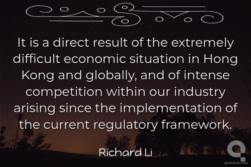It is a direct result of the extremely difficult economic situation in Hong Kong and globally, and of intense competition within our industry arising since the implementation of the current regulatory framework.