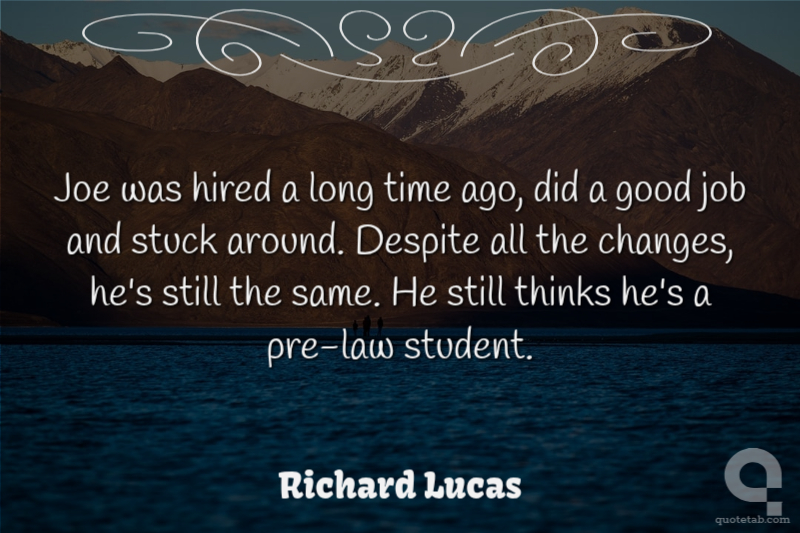 Joe was hired a long time ago, did a good job and stuck around. Despite all the changes, he's still the same. He still thinks he's a pre-law student.