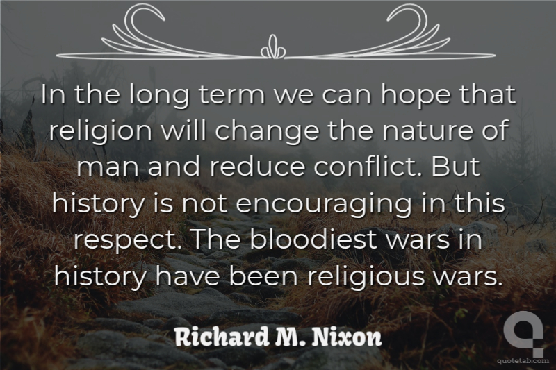 In the long term we can hope that religion will change the nature of man and reduce conflict. But history is not encouraging in this respect. The bloodiest wars in history have been religious wars.