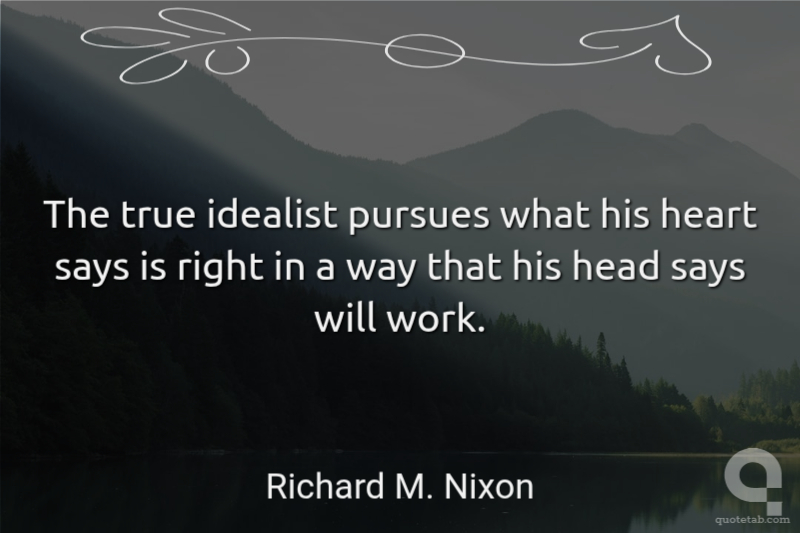 The true idealist pursues what his heart says is right in a way that his head says will work.