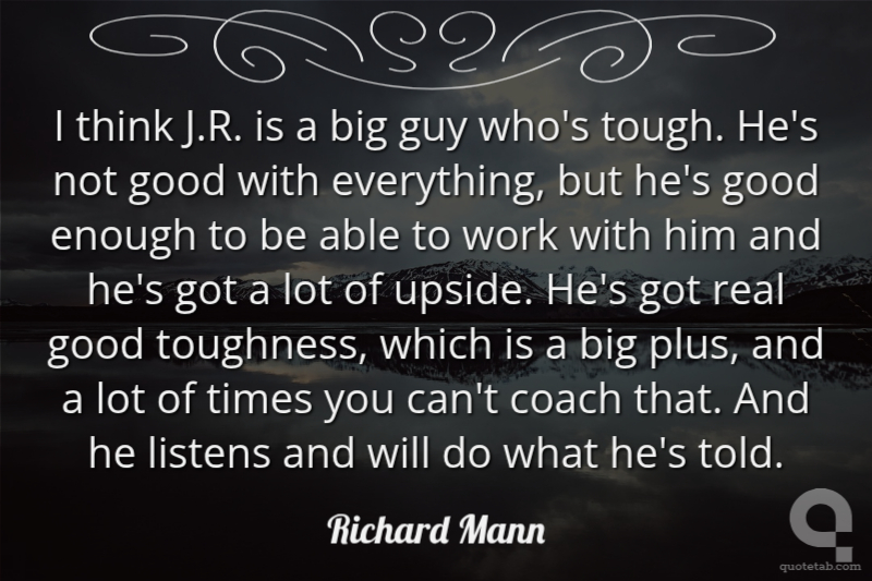 I think J.R. is a big guy who's tough. He's not good with everything, but he's good enough to be able to work with him and he's got a lot of upside. He's got real good toughness, which is a big plus, and a lot of times you can't coach that. And he listens and will do what he's told.