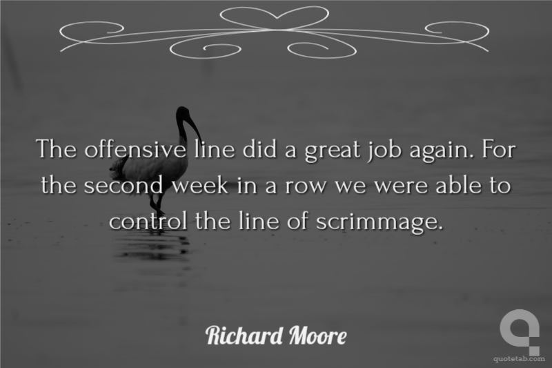 The offensive line did a great job again. For the second week in a row we were able to control the line of scrimmage.