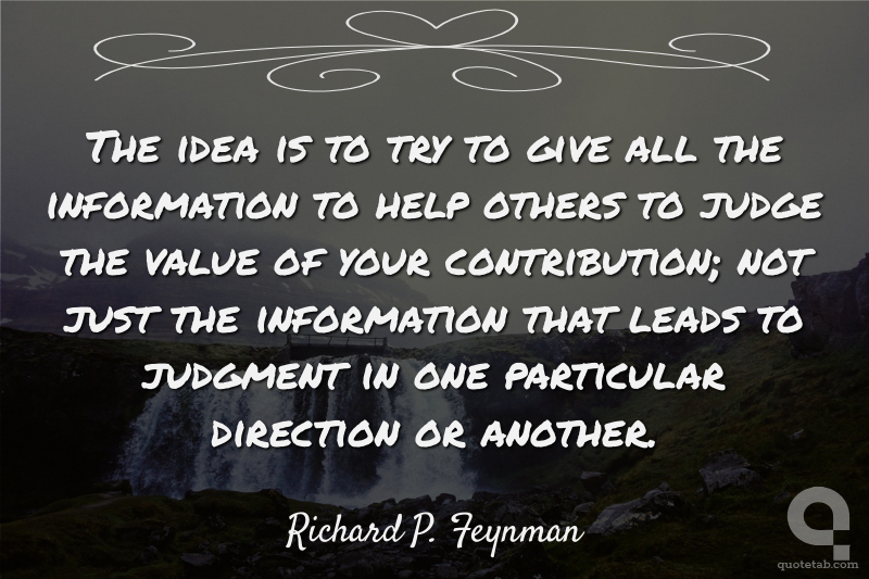 We've learned from experience that the truth will come out. Other experimenters will repeat your experiment and find out whether you were wrong or right. Nature's phenomena will agree or they'll disagree with your theory. And, although you may gain some temporary fame and excitement, you will not gain a good reputation as a scientist if you haven't tried to be very careful in this kind of work. And it's this type of integrity, this kind of care not to fool yourself, that is missing to a large extent in much of the research in cargo cult science.