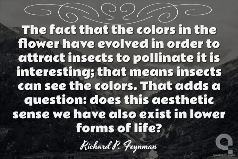 The fact that the colors in the flower have evolved in order to attract insects to pollinate it is interesting; that means insects can see the colors. That adds a question: does this aesthetic sense we have also exist in lower forms of life?