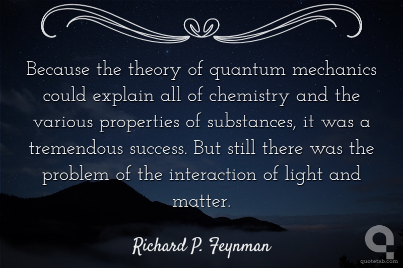 Because the theory of quantum mechanics could explain all of chemistry and the various properties of substances, it was a tremendous success. But still there was the problem of the interaction of light and matter.