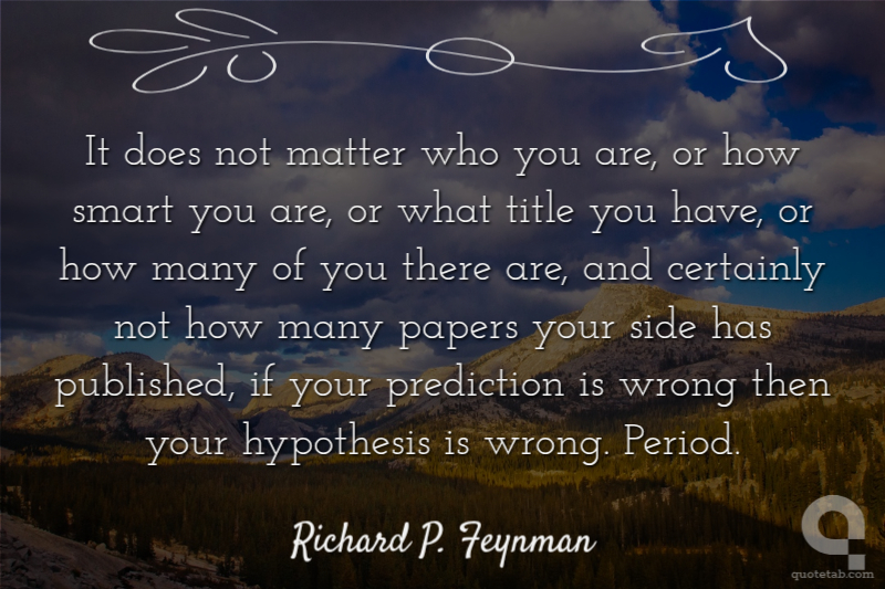 It doesn't matter how beautiful your theory is, it doesn't matter how smart you are. If it doesn't agree with experiment, it's wrong.