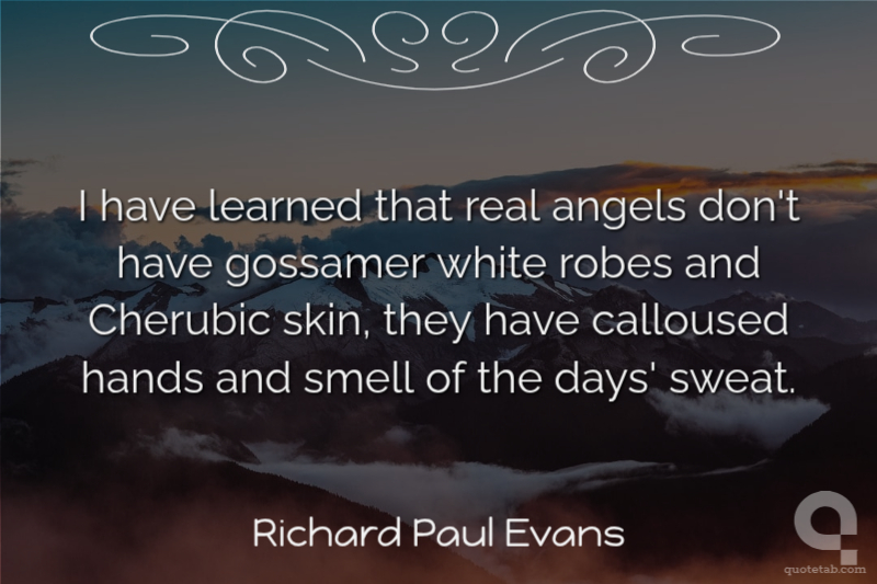 I have learned that real angels don't have gossamer white robes and Cherubic skin, they have calloused hands and smell of the days' sweat.