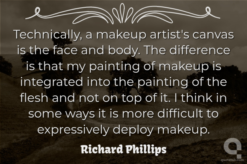 Technically, a makeup artist's canvas is the face and body. The difference is that my painting of makeup is integrated into the painting of the flesh and not on top of it. I think in some ways it is more difficult to expressively deploy makeup.