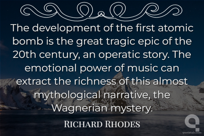 The development of the first atomic bomb is the great tragic epic of the 20th century, an operatic story. The emotional power of music can extract the richness of this almost mythological narrative, the Wagnerian mystery.