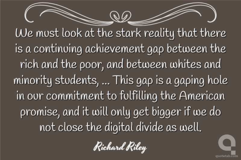 We must look at the stark reality that there is a continuing achievement gap between the rich and the poor, and between whites and minority students, ... This gap is a gaping hole in our commitment to fulfilling the American promise, and it will only get bigger if we do not close the digital divide as well.
