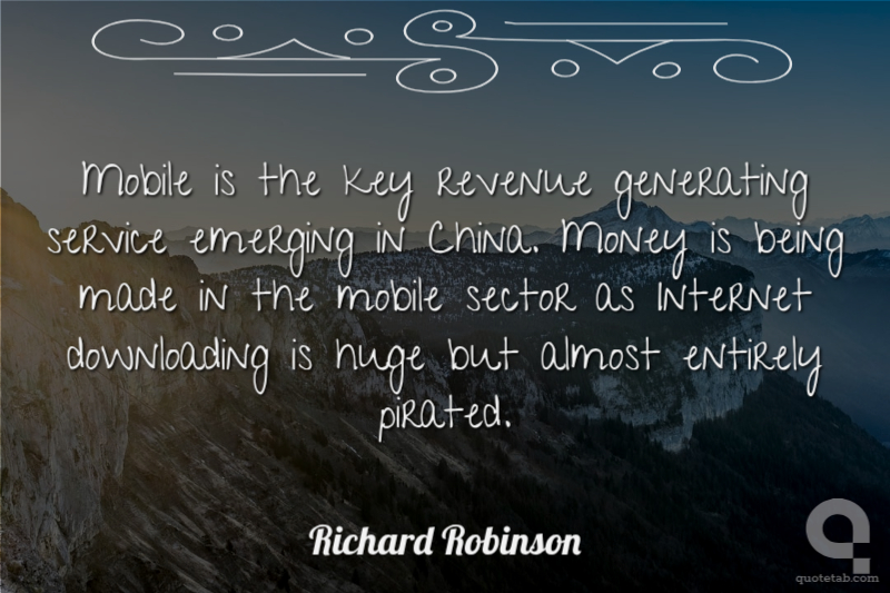 Mobile is the key revenue generating service emerging in China. Money is being made in the mobile sector as Internet downloading is huge but almost entirely pirated.