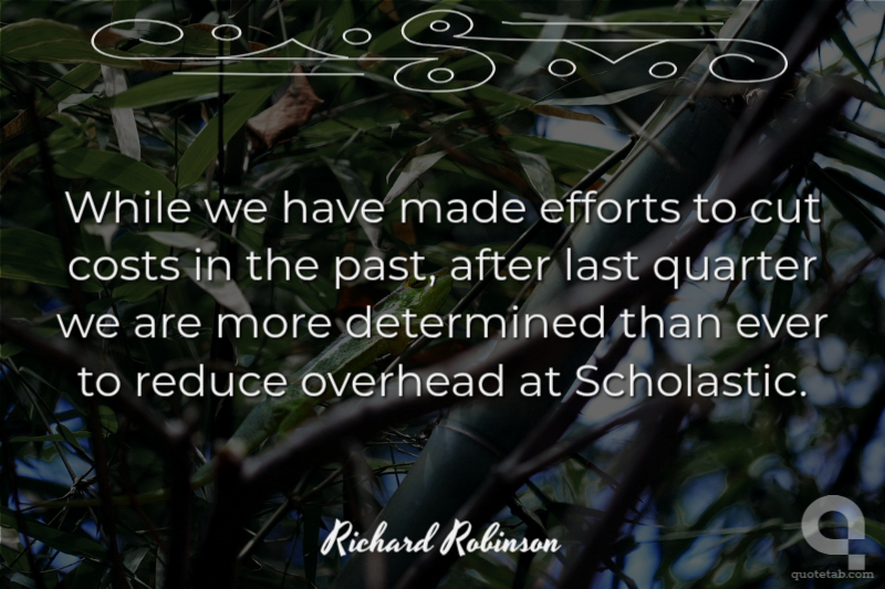 While we have made efforts to cut costs in the past, after last quarter we are more determined than ever to reduce overhead at Scholastic.