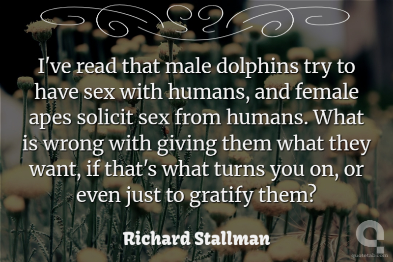 I've read that male dolphins try to have sex with humans, and female apes solicit sex from humans. What is wrong with giving them what they want, if that's what turns you on, or even just to gratify them?