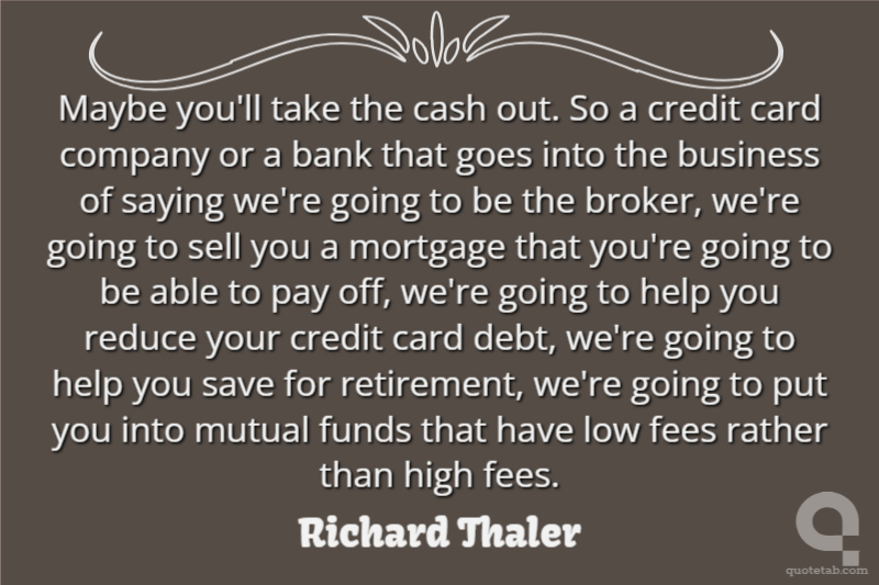 Maybe you'll take the cash out. So a credit card company or a bank that goes into the business of saying we're going to be the broker, we're going to sell you a mortgage that you're going to be able to pay off, we're going to help you reduce your credit card debt, we're going to help you save for retirement, we're going to put you into mutual funds that have low fees rather than high fees.