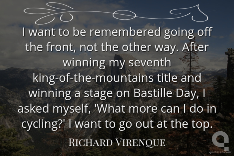 I want to be remembered going off the front, not the other way. After winning my seventh king-of-the-mountains title and winning a stage on Bastille Day, I asked myself, 'What more can I do in cycling?' I want to go out at the top.