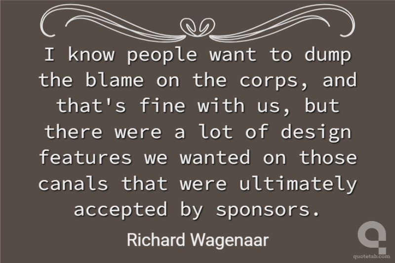 I know people want to dump the blame on the corps, and that's fine with us, but there were a lot of design features we wanted on those canals that were ultimately accepted by sponsors.