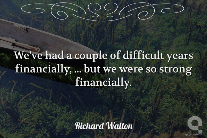 We've had a couple of difficult years financially, ... but we were so strong financially.