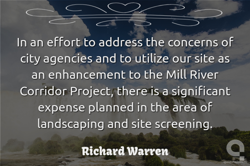 In an effort to address the concerns of city agencies and to utilize our site as an enhancement to the Mill River Corridor Project, there is a significant expense planned in the area of landscaping and site screening.