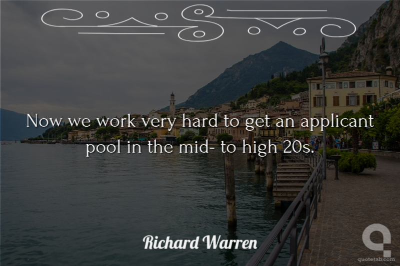 Now we work very hard to get an applicant pool in the mid- to high 20s.