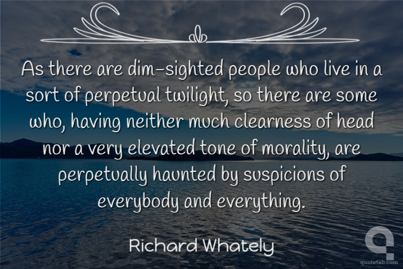 As there are dim-sighted people who live in a sort of perpetual twilight, so there are some who, having neither much clearness of head nor a very elevated tone of morality, are perpetually haunted by suspicions of everybody and everything.
