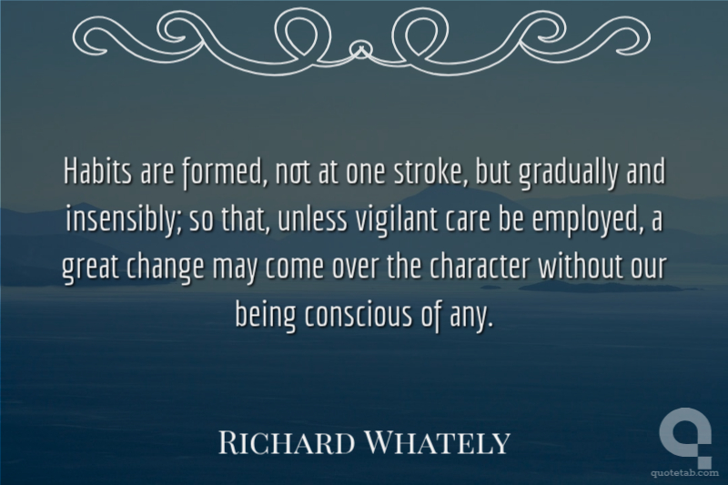Habits are formed, not at one stroke, but gradually and insensibly; so that, unless vigilant care be employed, a great change may come over the character without our being conscious of any.