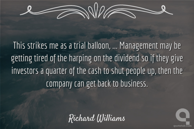 This strikes me as a trial balloon, ... Management may be getting tired of the harping on the dividend so if they give investors a quarter of the cash to shut people up, then the company can get back to business.