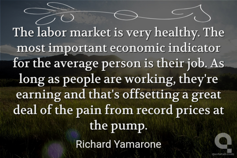 The labor market is very healthy. The most important economic indicator for the average person is their job. As long as people are working, they're earning and that's offsetting a great deal of the pain from record prices at the pump.