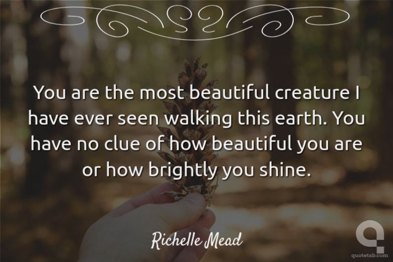 You are the most beautiful creature I have ever seen walking this earth. You have no clue of how beautiful you are or how brightly you shine.