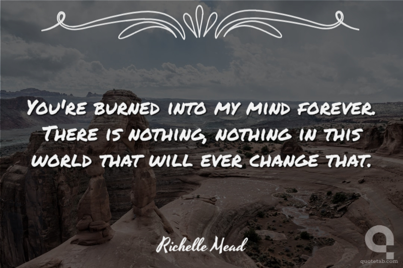You're burned into my mind forever. There is nothing, nothing in this world that will ever change that.