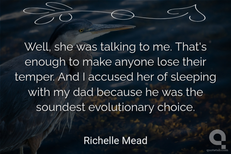 Well, she was talking to me. That's enough to make anyone lose their temper. And I accused her of sleeping with my dad because he was the soundest evolutionary choice.