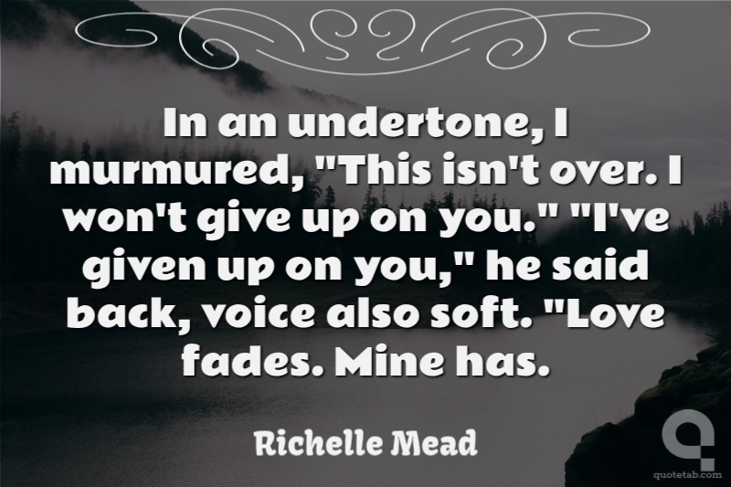 In an undertone, I murmured, "This isn't over. I won't give up on you." "I've given up on you," he said back, voice also soft. "Love fades. Mine has.