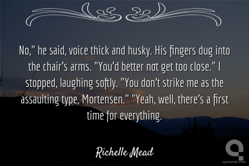 No," he said, voice thick and husky. His fingers dug into the chair's arms. "You'd better not get too close." I stopped, laughing softly. "You don't strike me as the assaulting type, Mortensen." "Yeah, well, there's a first time for everything.