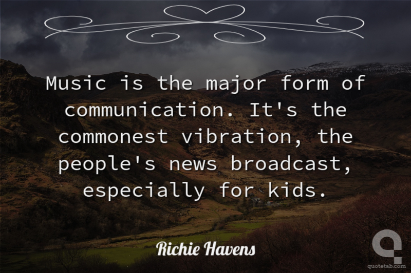 Music is the major form of communication. It's the commonest vibration, the people's news broadcast, especially for kids.