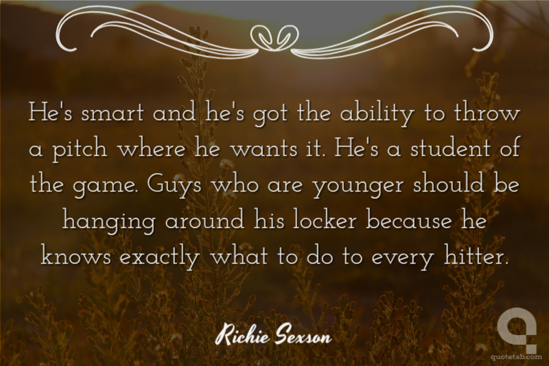 He's smart and he's got the ability to throw a pitch where he wants it. He's a student of the game. Guys who are younger should be hanging around his locker because he knows exactly what to do to every hitter.