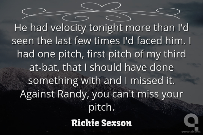 He had velocity tonight more than I'd seen the last few times I'd faced him. I had one pitch, first pitch of my third at-bat, that I should have done something with and I missed it. Against Randy, you can't miss your pitch.