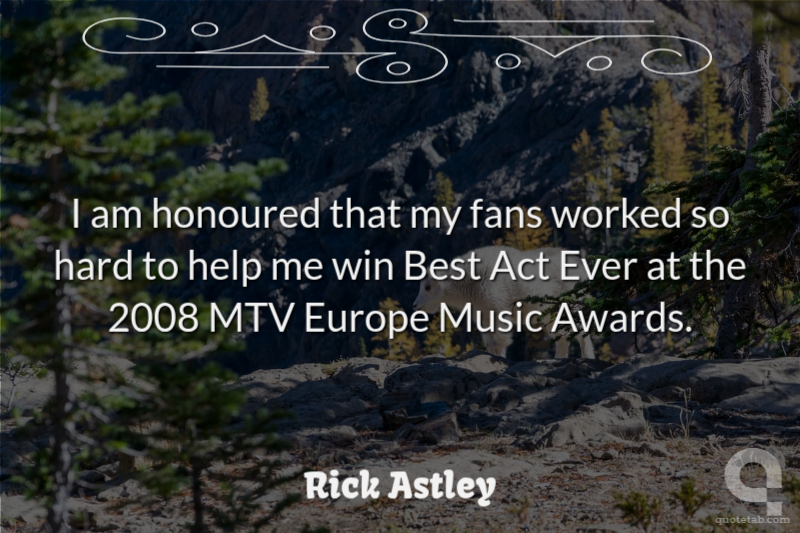 I am honoured that my fans worked so hard to help me win Best Act Ever at the 2008 MTV Europe Music Awards.