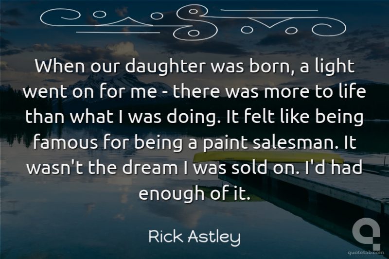 When our daughter was born, a light went on for me - there was more to life than what I was doing. It felt like being famous for being a paint salesman. It wasn't the dream I was sold on. I'd had enough of it.