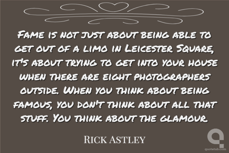 Fame is not just about being able to get out of a limo in Leicester Square, it's about trying to get into your house when there are eight photographers outside. When you think about being famous, you don't think about all that stuff. You think about the glamour.