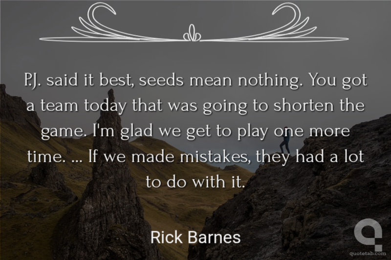 P.J. said it best, seeds mean nothing. You got a team today that was going to shorten the game. I'm glad we get to play one more time. ... If we made mistakes, they had a lot to do with it.