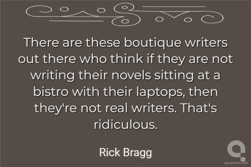 There are these boutique writers out there who think if they are not writing their novels sitting at a bistro with their laptops, then they're not real writers. That's ridiculous.