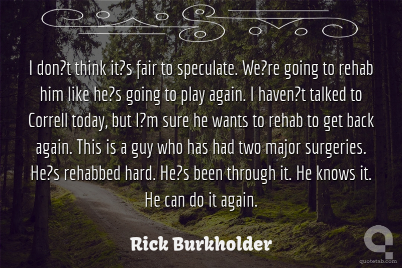 I don?t think it?s fair to speculate. We?re going to rehab him like he?s going to play again. I haven?t talked to Correll today, but I?m sure he wants to rehab to get back again. This is a guy who has had two major surgeries. He?s rehabbed hard. He?s been through it. He knows it. He can do it again.