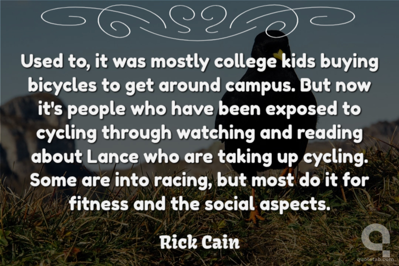 Used to, it was mostly college kids buying bicycles to get around campus. But now it's people who have been exposed to cycling through watching and reading about Lance who are taking up cycling. Some are into racing, but most do it for fitness and the social aspects.